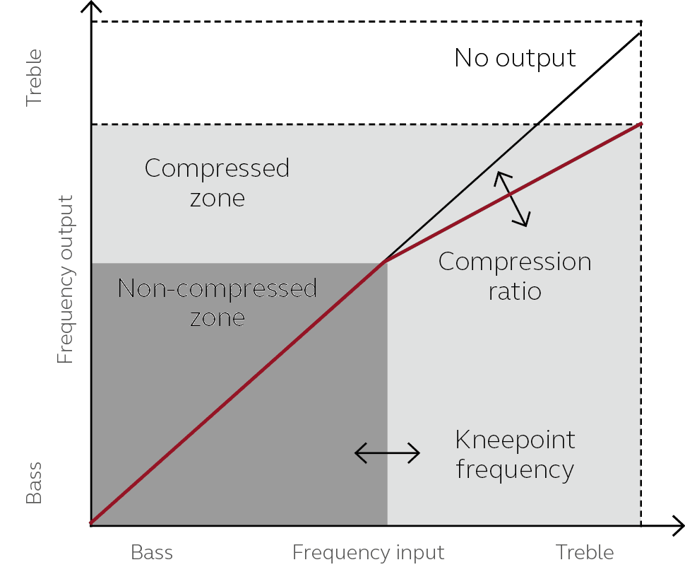 RoleAllows audibility improvement for high-frequency sounds by compressing them in a frequency zone where they can be heard.
